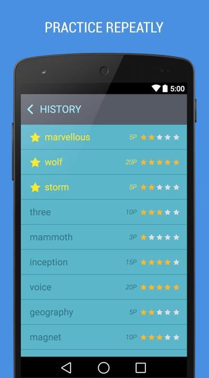 2. Listen and try to mimic a right pronunciation test and improve your star rating.