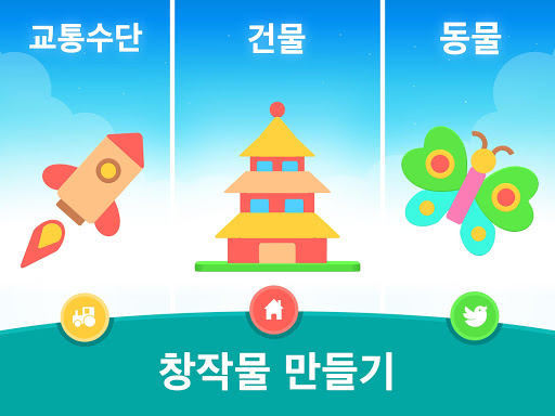 블록으로 차, 동물, 건물 만들기 •• 아이들은 모양, 색깔, 크기를 구별하는 법을 배웁니다 •• 매우 다양한 템플릿과 모양 포함.