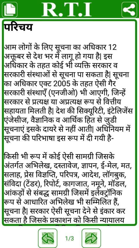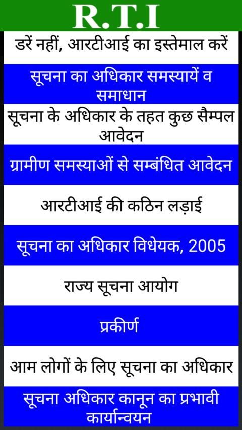 RTI Act in Hindi app has following topics: