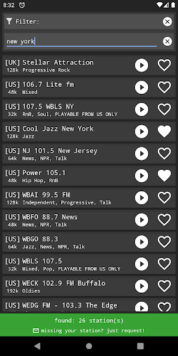 당신은 당신의 즐겨 찾기에 스테이션을 추가하고 재생할 수 있습니다 라디오 플레이어에서. 알림 바에서