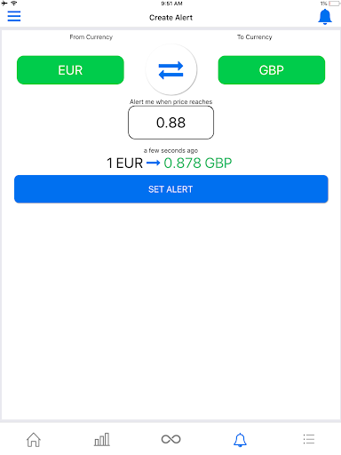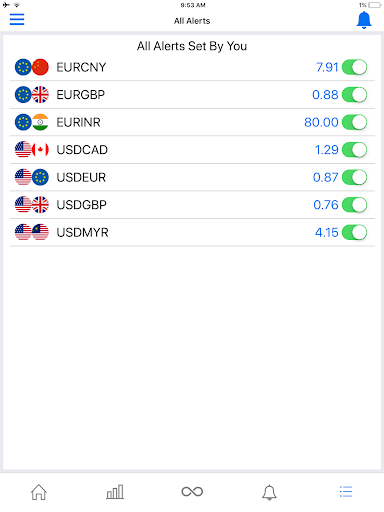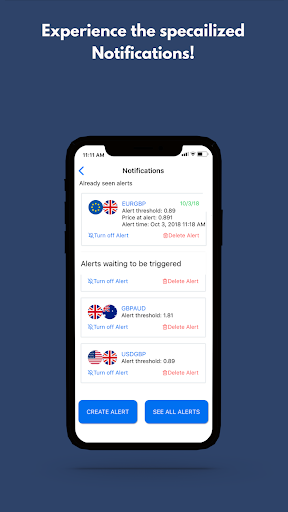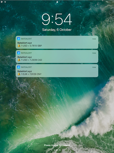 가상 무료, 빠르고, 유연하고, 간단한 통화 환율 알림 응용 프로그램. 라이브 티커와 150 개 이상의 통화 환율. 단순히 당신이보고 원하는 환율하고자하는 통화에 대한 속도 경고를 설정합니다. 현재 환율이 올바른 값에 도달하면, 우리는 즉시 당신에게 푸시 알림을 보내드립니다.