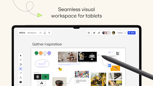 태블릿 및 모바일 용 Miro의 화이트 보드 앱은 프로젝트와 컨텍스트를 한 곳에 두는 보드와 협력 할 수있는 도구를 제공합니다.