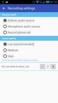 - set recording options (sound source, the sound quality, the minimum record length)