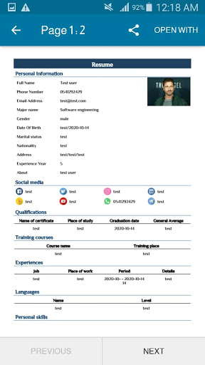 - 생성 한 CV를 포함한 모든 PDF 파일을 읽으십시오.응용 프로그램을 통해.