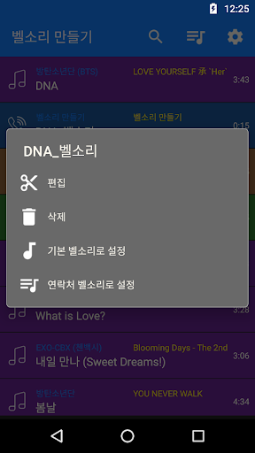 - 벨소리 삭제, 편집, 기본벨소리, 기본알림음 설정 지원