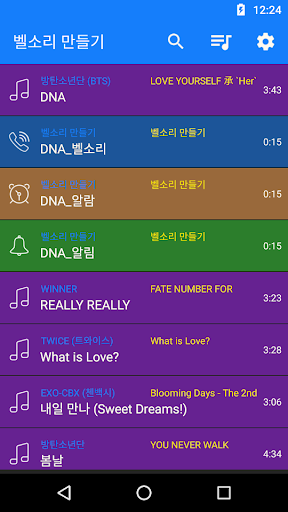벨소리만들기는 Ringdroid을 기반으로 하며, 아파치 라이센스 하에서 사용됩니다.
