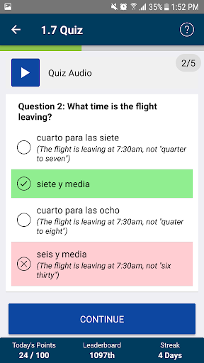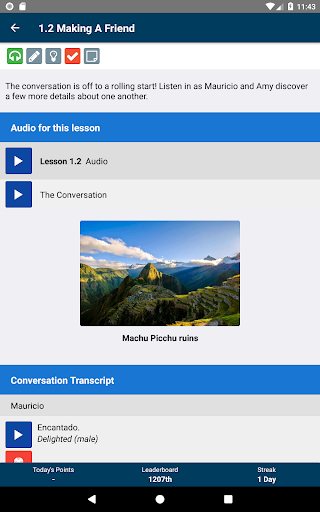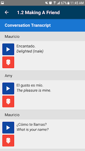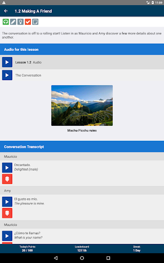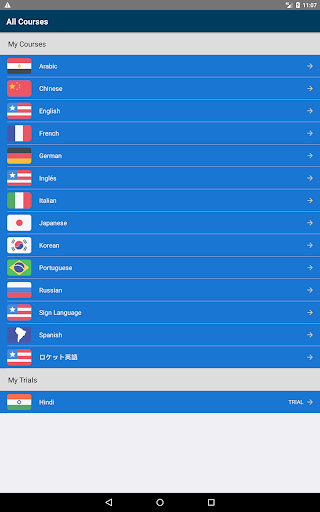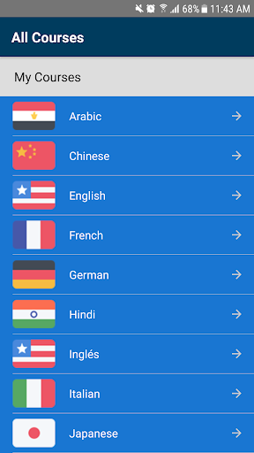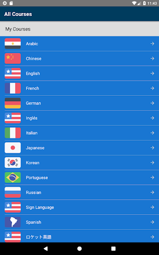 • 스페인어를 배울 수 있습니다 , 프랑스어, 이탈리아어, 독일어, 일본어, 만다린 중국어, 아랍어 (이집트), 러시아어, 포르투갈어 (브라질), 힌디어, 한국어.