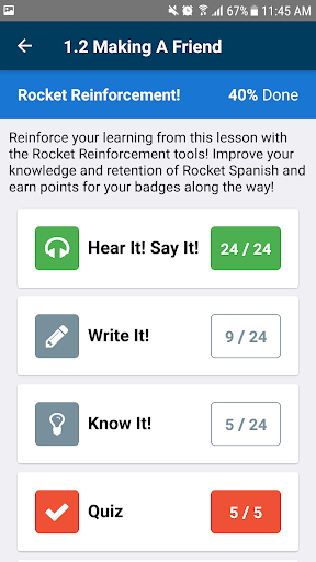 5. 당신이 배우는 동안 동기 부여를 유지하고 재미있게 지내십시오 : 로켓은 당신이 당신을 위해 계속, 동기 부여, 트랙에서 당신을 유지할 수있는 다양한 활동과 기능을 포함하도록 설계되었습니다.
