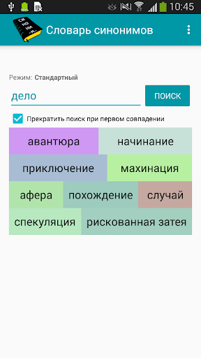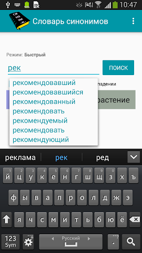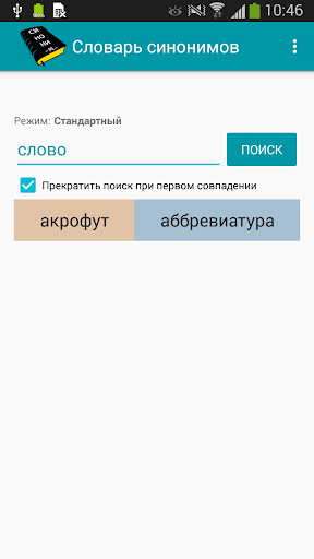 Compact synonym dictionary working without Internet connection. Simple way getting synonym from any Russian word. Helpful for students and writers.