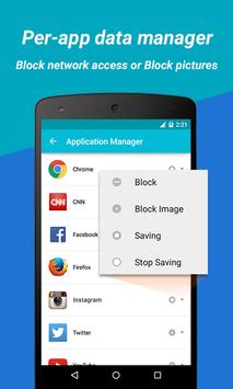 Beside compression, SAVEit also provides functionalities to totally block any application to use data traffic. By clicking the small arrow button of the application, you can see there're 4 saving modes: