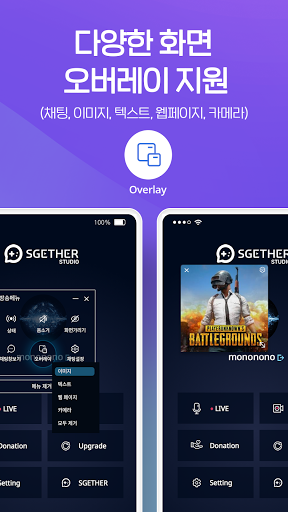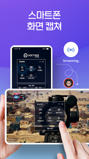 SGETHER STUDIO는 폰 화면을 그대로 방송할 수 있습니다.
