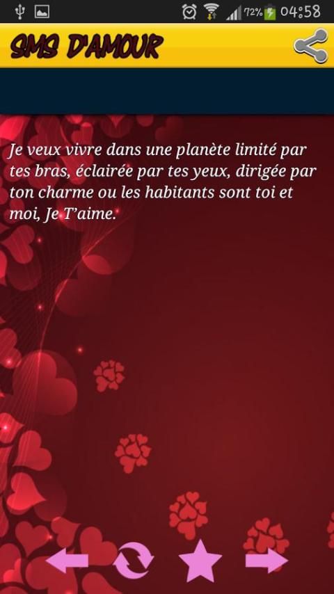 Express your feelings and send a little love in very soft French message to your love has become very easy with this application, you no longer have to write SMS for your sweetheart, you simply open the app, choose the message you want to send and hop done!