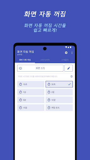 화면 끄기 위젯이나 빠른 설정 타일 사용 시 디바이스를 잠그기 위해 사용합니다. 어떠한 개인정보나 데이터를 수집하거나 공유하지 않습니다.