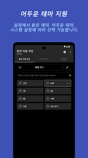 '화면 자동 꺼짐' 앱의 설정에서 모든 권한을 부여해 주시면 앱이 최적화 되어 동작합니다.