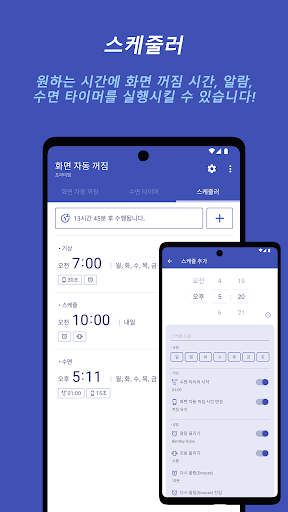 특정 시간에 “알람 울리기, 화면 꺼짐 시간 변경, 수면 타이머 동작” 기능들을 등록하여 사용할 수 있습니다.