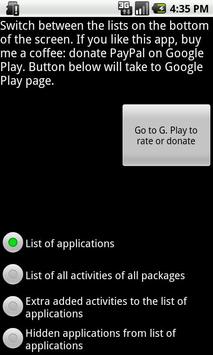 - Eliminate need for various apps: add any activity of any app on your device to list of apps (e.g. Wifi settings, ...).