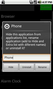 - Get rid of un-unistalable apps: hide any app from list of apps adding it to the hide list.