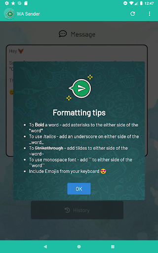 - History of previous messages for quick re-sending!