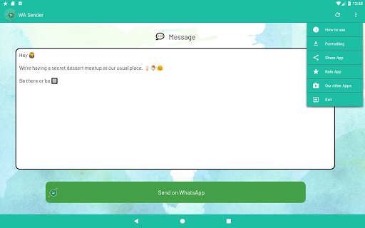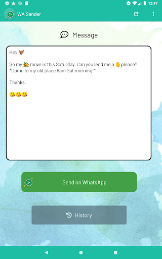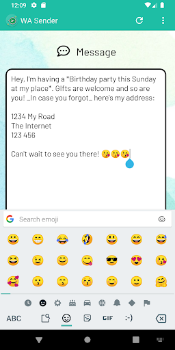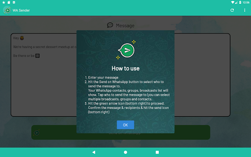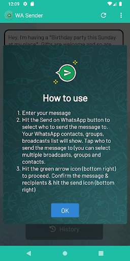 - Easy way to send party invites, updates or adverts to multiple WhatsApp contacts in 1 go without having to create a broadcast!