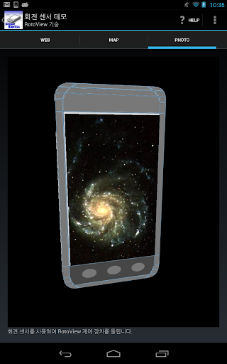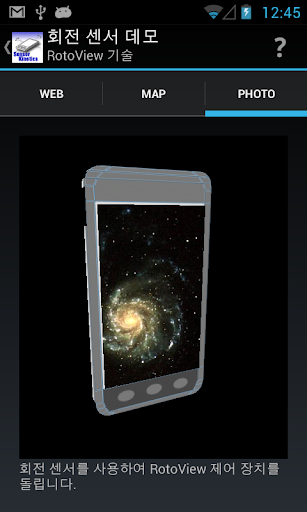 응용 프로그램은 RotoView 기술을 안내하는 가속도계와 자이로 스코프를 사용하는 방법을 보여줍니다.RotoView는 틸트 기반 뷰 탐색이며, 그것은 INNOVENTIONS 법인에 의해 개발되었다.응용 프로그램은 나침반을 구축하는 자기 센서를 사용하는 방법을 보여줍니다. 특수 디스플레이는 선형 가속도 센서와 중력 센서의 동작을 보여줍니다.