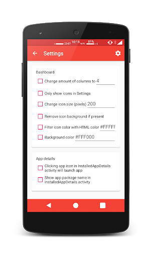 • Launch an app by clicking its icon in the InstalledAppDetails activity