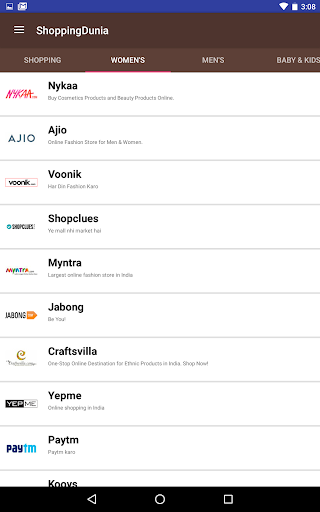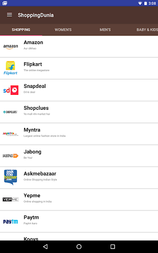 Shopping Dunia is an amazing Android application which is a one-click-shop solution for all your shopping needs in India. Get everything at one click. No hassle of visiting different websites or installing different applications on your mobile. A safe and secure way to shop for top brands in India from the leading websites. So enjoy shopping at Shopping Dunia.