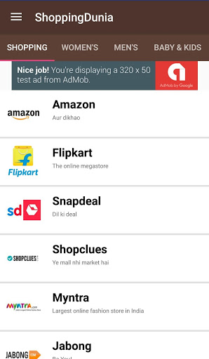 Shopping Dunia features top brands like Amazon, Flipkart, Paytm, Snapdeals, Myntra, Jabong, Yepme, Ebay, Homeshop18, Purplle, Nykaa, Ajio, Voonk, PrettySecrets, Firstcry, Babyoye, KFC, McDonalds and more.