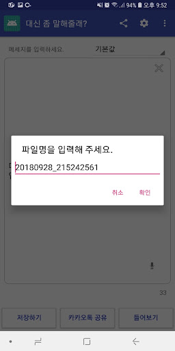 상대방에게 직접적으로 하기 힘든 말들을 입력하여, 음성 파일로 변환해서 이야기해 보세요^^ Just do it. ---- 개발자 연락처 : com.simple.apps@gmail.com