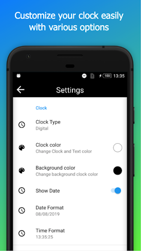 휴대 전화 만들기 간단한 책상 시계를 사용하여 작업에 더 많은 초점을 맞추십시오 다양한 옵션으로 시계를 사용자 정의하기 - 아날로그 시계 또는 디지털 - 좋아하는 날짜 및 시간 형식을 선택하십시오 - 또는 하이라이트귀하의 선택의 색상으로 스타일 업데이트 됨 2020