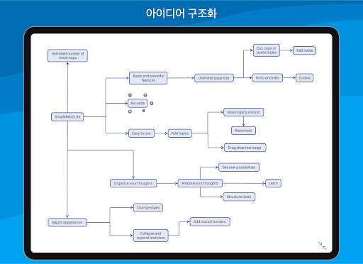 마인드 매핑은 생각을 정리하고, 기억을 환기시키며 새로운 아이디어를 창출하는 데 유용합니다.언제, 어디서나 마인드 매핑을 할 수 있는 탁월하고 직관적인 앱을 개발했습니다.