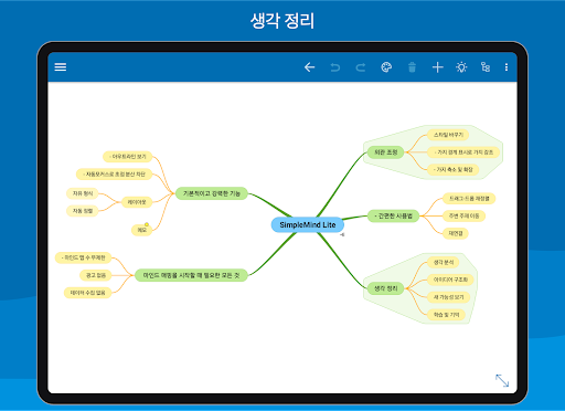 SimpleMind는 스마트폰과 태블릿에 모두 최적화되었습니다. 일부 기능은 최신 Android 버전에서만 이용할 수 있습니다.