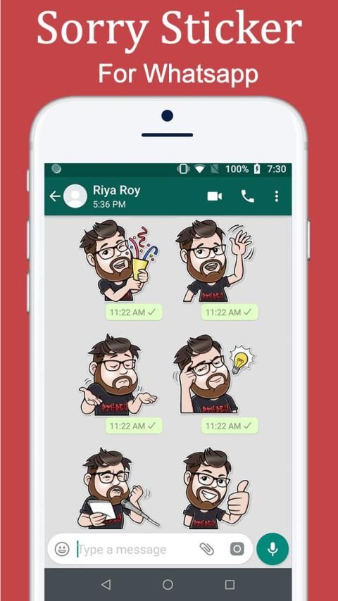Free sticker app has sorry cartoon pack with different reactions and also forgive me quotes caption.