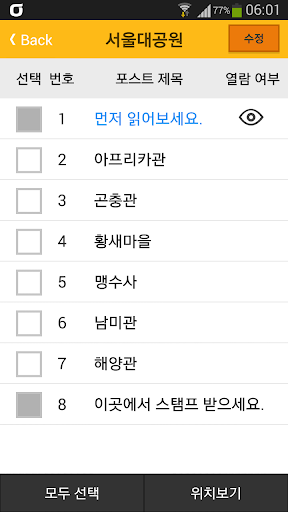 또한 포스트를 열람한 사용자가 해당 포스트에서 스탬프를 받을 수 있도록 설정할 수 있으며, 획득한 스탬프는 본 앱의 [스탬프 수첩]에 남게 됩니다. 획득한 스탬프에는 스탬프를 받기 위해 실행했던 활동내역이 포함되어 있어 이를 확인할 수 있고, 또한 활동내역을 작성자에게 E-mail로 발송할 수도 있습니다.