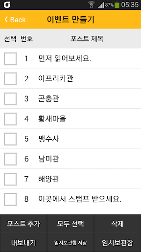 개인 사용자가 만든 이벤트 파일은 인터넷 동호회 게시판에 올려 다른 사용자들과 공유하거나, E-mail을 통해 공유하면 됩니다. 기업, 정부, 지방자치단체 또는 민간 단체가 만든 이벤트 파일은 자체 홈페이지에 올려 배포하거나 본 앱 [이벤트 알림]의 유료 게시판에 올려 배포할 수도 있습니다.(현재 이벤트 알림 서비스는 준비 중...)