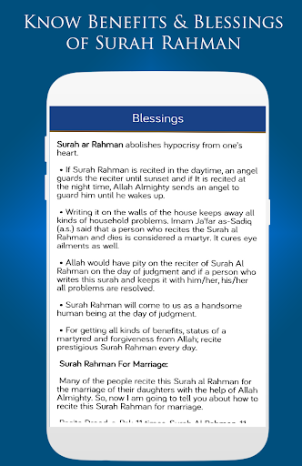4 - Quran 의이 아름다운 Surah를 읽고 듣는 이점과 축복을 알려주는 축복 탭이 있습니다