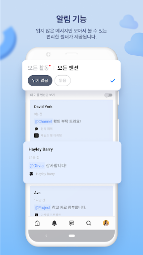 편리한 알림과 탐색: @멘션 및 활동 탭을 사용하면 내가 참여하는 모든 워크스페이스에서 확인이 필요한 게시물만 모아서 보고, 관련 채널이나 프로젝트로 쉽게 이동할 수 있습니다.