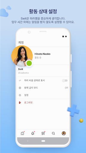 최고의 효율: 더 이상 여러 툴에 분산된 정보와 커뮤니케이션으로 혼란과 불편을 겪지 않아도 됩니다. Swit에서는 채팅과 업무 관리를 자유롭게 전환할 수 있으며, 이 과정에서 생기는 모든 데이터를 쉽게 접근하고 검색할 수 있습니다.