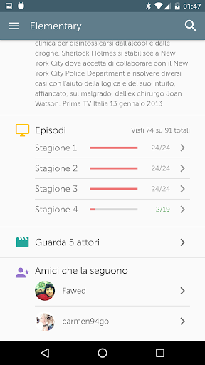앱을 사용하면 스트리밍 에피소드를 볼 수 없습니다. 그러나 사이트에서 스트리밍 또는 자막이 있는지 여부를 나타내는 두 개의 표시기가 있습니다. 당신이 따르거나 사용자 조언을 기반으로 시작할 새로운 TV 시리즈를 발견 할 수 있습니다.