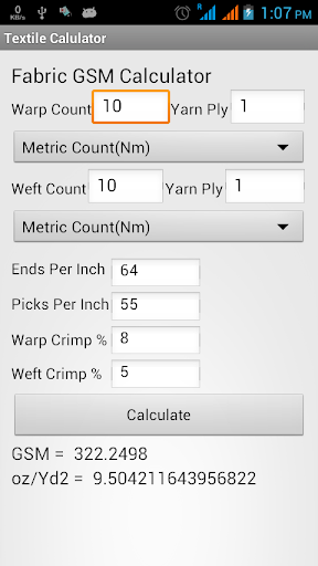 Fabric GSM Calculator: By putting counts,epi,ppi and crimp% you can calculate GSM and oz/yd2 of the fabric