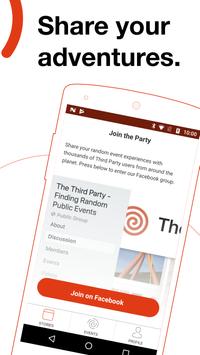 NPR의 "Invisibilia"Podcast에서 의견이있는 것처럼, 제 3자는 일상 생활을 둘러싼 거품을 팝업하기 위해 무작위로 생성 된 모험을 할당하는 모바일 앱입니다. 공공 이벤트에 대한 자세한 정보를 받게됩니다.곧 당신 근처에 일어납니다. BR /> • 루트에서 벗어나 완전히 새로운 방식으로 세상을 보아라.