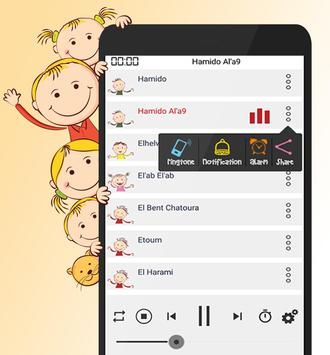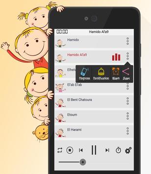 Update your phone with the most popular songs like: Alarnab wa ta3lab, ala 3ini, Hamidou, Harami, are Oustad, mama Jabet baby, arra3i lkaddab, Marra tala3na wmachina, al3ab Jiran, baghsil wichi, saymin (without music), gayina Ramadan (Ramadan songs 2016, without music), an todkhilani rabi ljana, bismillah, batata, binti zghira, are Tayba ...etc.