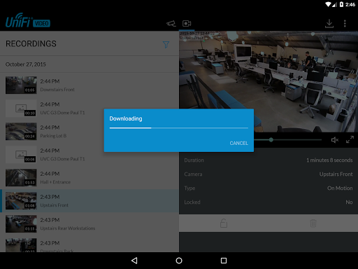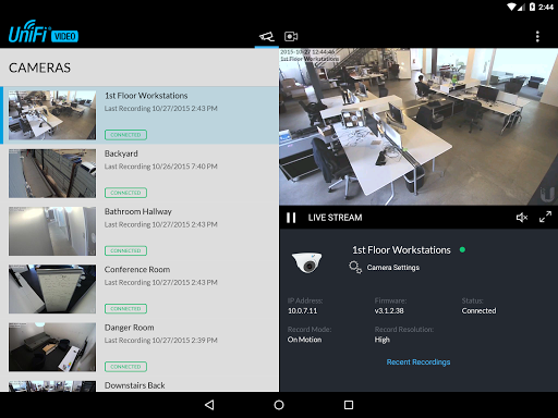 UniFi Video cameras can be managed and monitored from the UniFi Video mobile application via the Network Video Recorder (NVR) Controller software. The NVR Controller software allows you to view live feeds and recordings from your UniFi Video cameras.