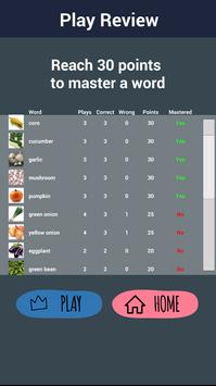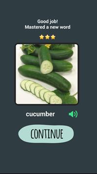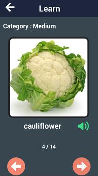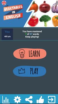 The education app teaches the vegetables in English using real photos, sounds and show how to write them with a game.
