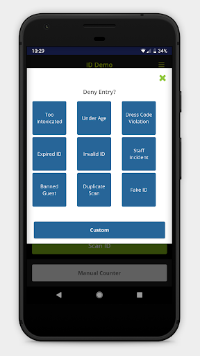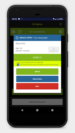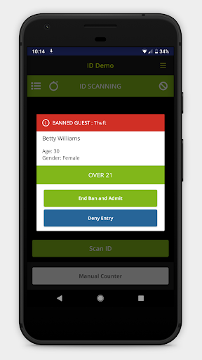 • 나이 확인 - 나이 확인 - 누군가가 21 세 미만인 경우 쉽게 색상 코딩 된 알림으로 21 세 미만인지 즉시 알 수 있습니다.ID는 패스백이거나 손님이 금지됩니다