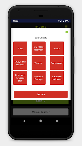 게스트 추적 및 ID 검증과 함께 금지 목록을 디지털 86 목록으로 추적 할 수 있습니다.그날 밤 누가 당신의 문을 일하는지에 관계없이 당신의 장소를 보호하도록 금지 된 손님에게 경고하십시오.ID가 유효하지 않거나 만료되었거나 지난 20 분 이내에 스캔 된 경우에도 경고됩니다.그것은 나이트 클럽과 바에 이상적인 솔루션으로, 각 손님에게 개인적인 경험을 제공하기 위해 귀중한 정보를 수집하면서 장소를 보호하는 동안 장소를 보호합니다.