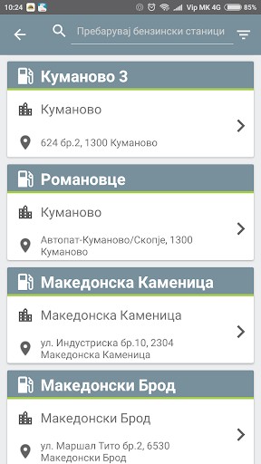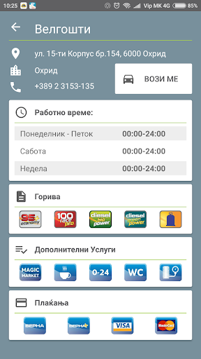 Verna Go는 마케도니아에서 가장 가까운 주유소에 도착할 수있는 GPS로 편리한 위치를 제공합니다. 가솔린 스테이션 중 하나를 클릭하면 Makpetrol이 제공하는 연료 유형 및 추가 서비스에 대한 정보를 받게됩니다.