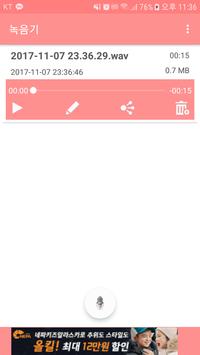 - 녹음 파일 재생, 공유, 삭제, 파일명 변경 등이 가능합니다.