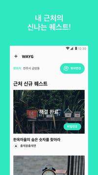 여행이 재밌어지는 순간-Where are you going? WAYG는 여행의 재미를 더하는 여행 콘텐츠 서비스입니다. 주요 관광지 마다 쉽고 재밌는 퀘스트를 추가해서 모두가 공유하면서 즐길 수 있는 콘텐츠를 제공합니다. 퀴즈, 위치 인증 등 다양한 퀘스트를 추가 할 예정입니다. 웨이지, WAYG, 여행, 퀘스트, 여행 콘텐츠, 여행 버킷리스트