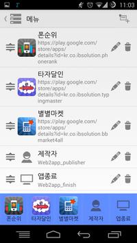 Web2App은 사용자가 정의한 메뉴버튼을 통해 웹사이트를 이동할 수 있는 기능을 포함하고 있으며 스마트폰과 태블릿 기종을 모두 지원합니다.