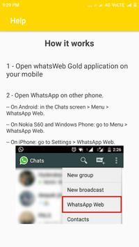 1. Install and Open Whatsweb Gold on device (Phone/Tablet) you want to sync/clone your whatsapp to